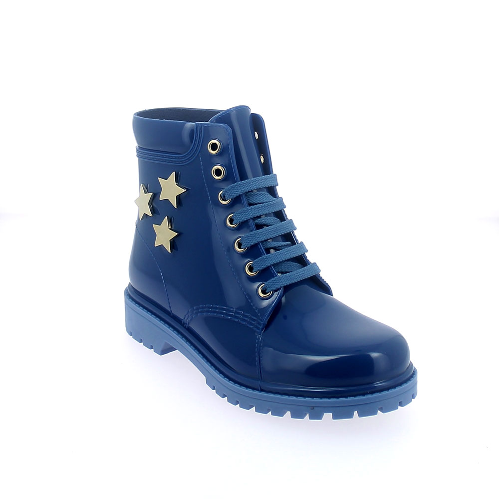 SHORT LACED UP WALKING BOOT IN "BLU CHIARO" PVC WITH GOLD STARS