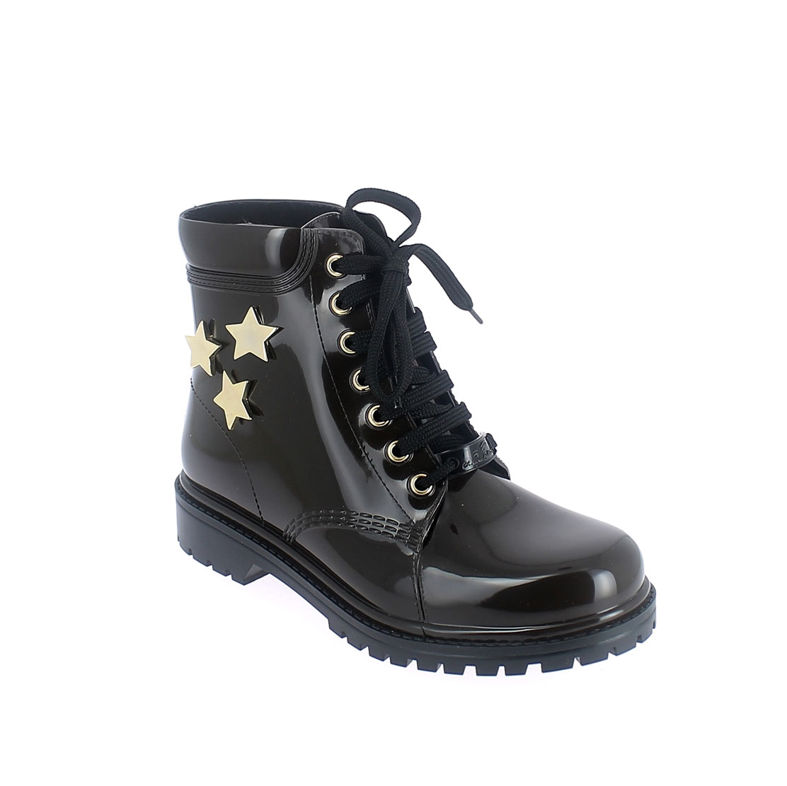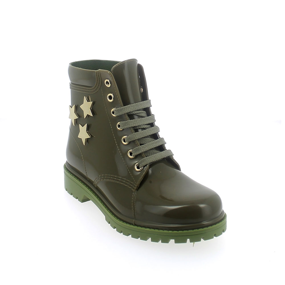 SHORT LACED UP WALKING BOOT IN "OLIVA" PVC WITH GOLD STARS