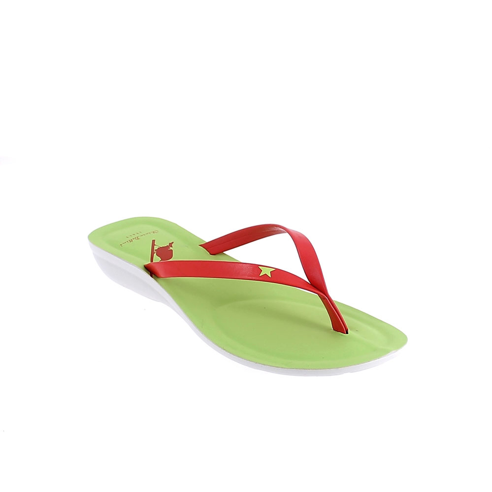 TWO-COLOUR FAUX LEATHER THONG IN SALMONE-SMERALDO COLOUR
