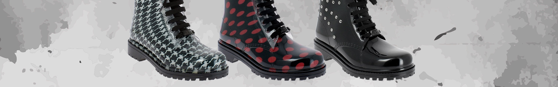 Sullo Shop Online sono ora in vendita nuovi stivaletti da donna modello anfibio in Pvc, della linea Stivali classici e pioggia donna 2015-16.
