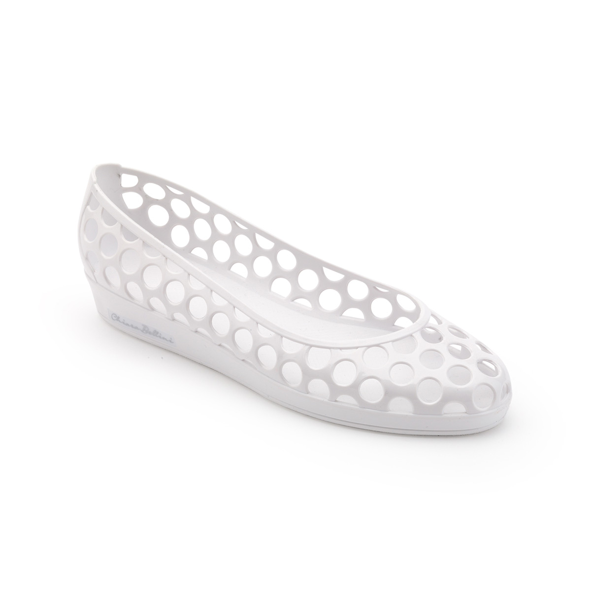 Ballerina in pvc colore bianco con fori tondi su tutta la tomaia.