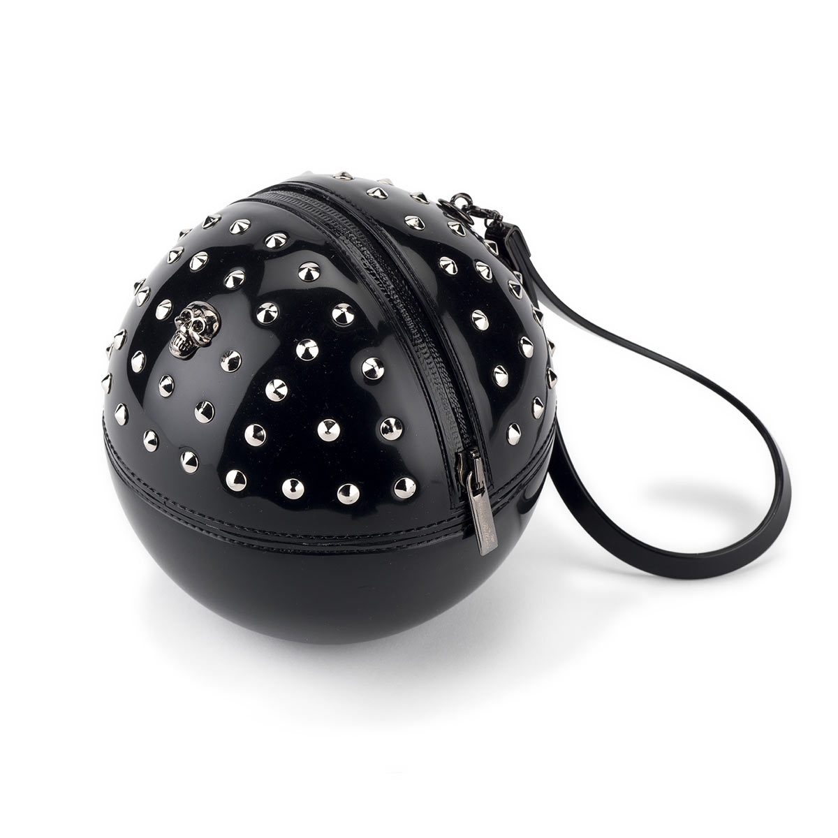 Borsa sfera "rock'n'ball" borchiata in pvc lucido