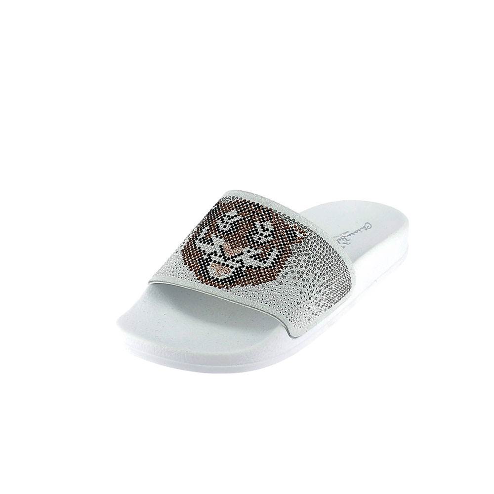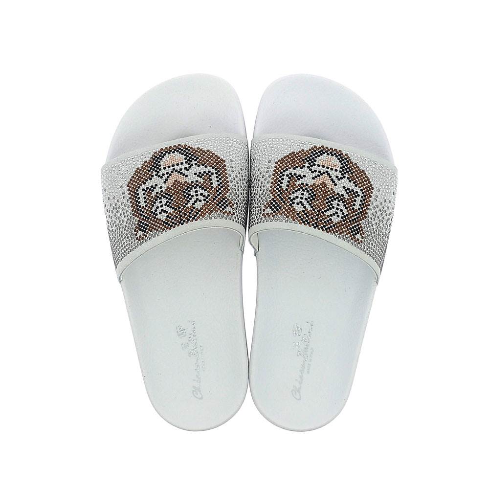 CIABATTA IN PELLE CON STRASS TIGRE. BIANCO