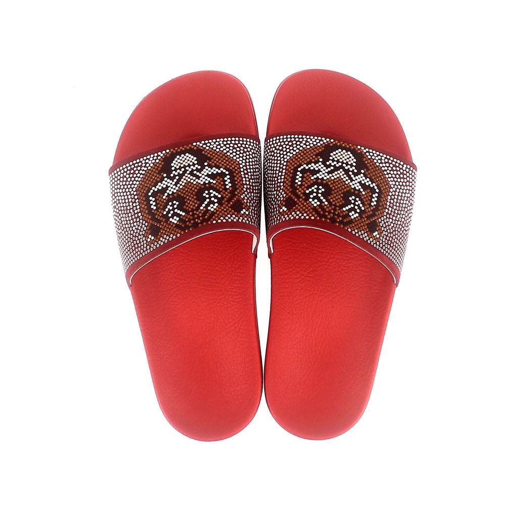 CIABATTA IN PELLE CON STRASS TIGRE. ROSSO
