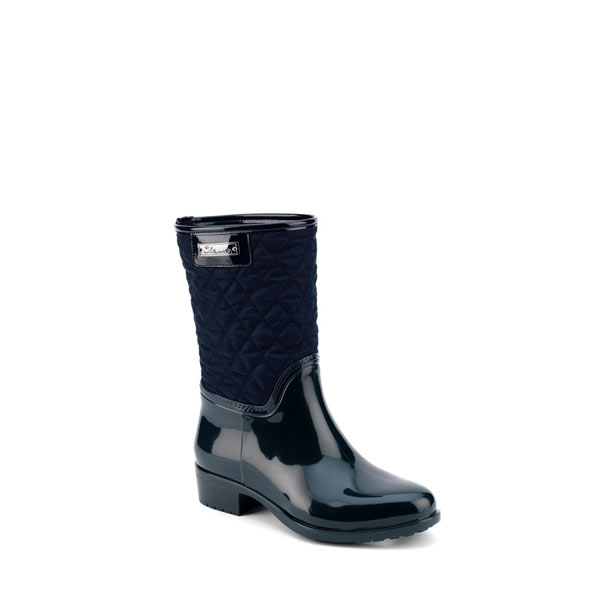 Stivale in pvc Blu con gambale basso in tessuto lucido trapuntato