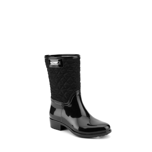 Stivale in pvc Nero con gambale basso in tessuto lucido trapuntato