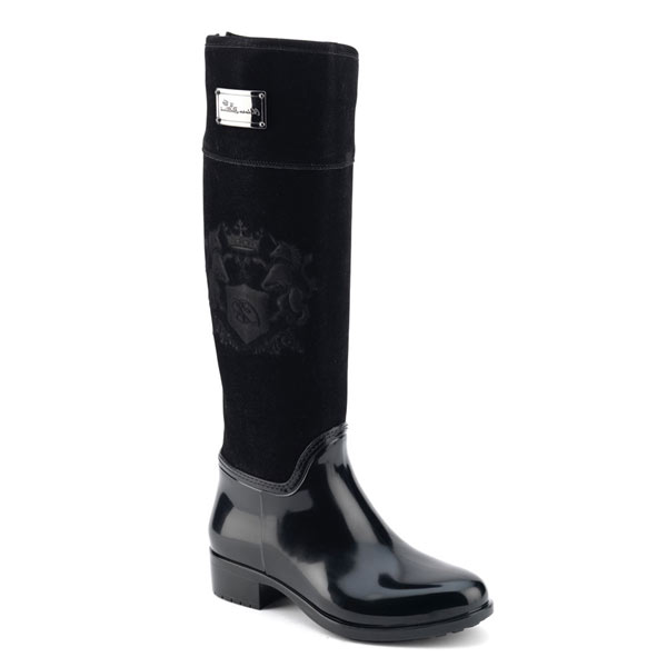 Stivale in pvc Nero con gambale alto scamosciato e stampa lusso in rilievo