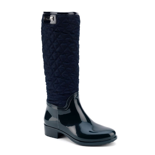 Stivale in pvc Blu con gambale alto in tessuto lucido trapuntato
