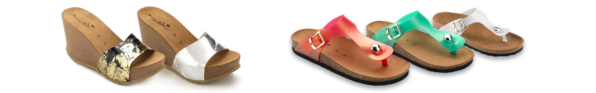 La linea di calzature con suola in sughero di Chiara Bellini comprende diversi modelli alla moda e assolutamente confortevoli: