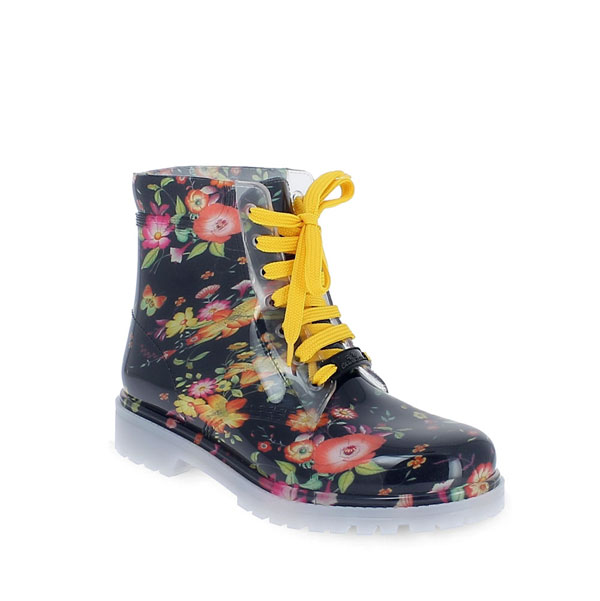 Stivaletto anfibio in pvc trasparente con fantasia fiori