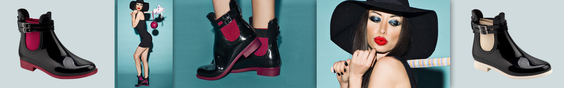 Lo stivaletto modello Beatle in Pvc proposto da Chiara Bellini presenta una particolarità costituita dal doppio cinturino che abbraccia la caviglia, dettaglio che sdrammatizza lo stile più classico di questa calzatura.