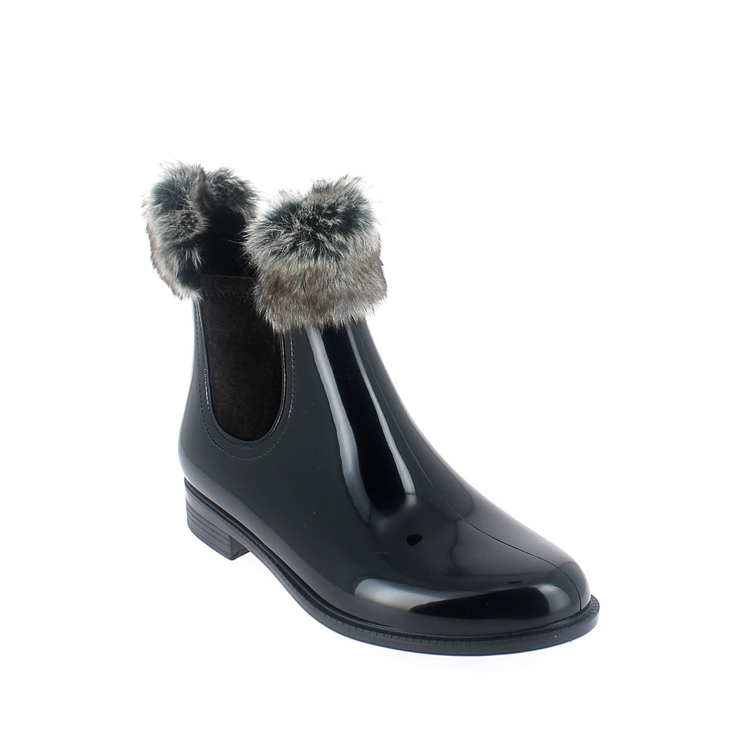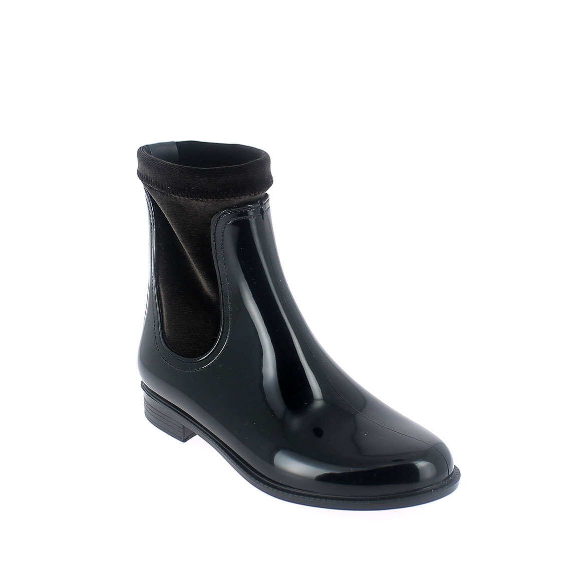 Stivaletto modello chelsea in pvc con fodera in velluto elasticizzato. Lo stivaletto in pvc presenta una fodera in velluto elasticizzato. Questa particolare fodera sale fino ad abbracciare la caviglia Colore: Nero con fodera in velluto marrone Misure disponibili: 35-41