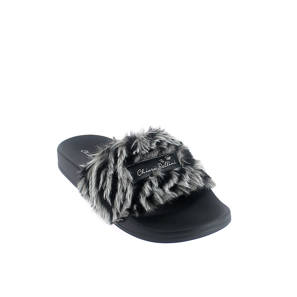 Ciabatta con fascia in ecopelliccia mimetica e logo 3D