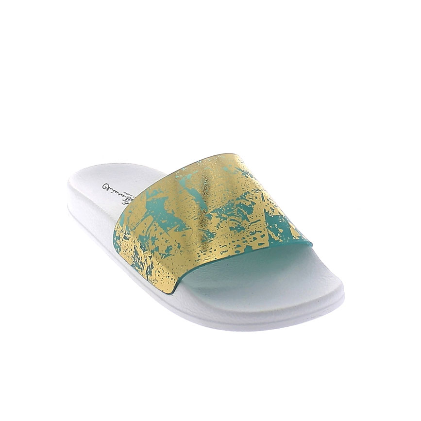 CIABATTA ESTIVA CON FASCIA IN PVC ACQUA LAMINA ORO