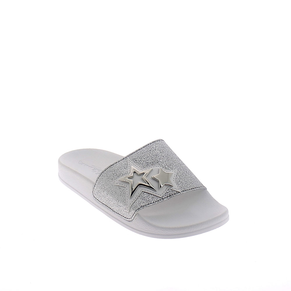 CIABATTA ESTIVA ARGENTO-BIANCO CON FASCIA GLITTERATA E STELLE IN METALLO