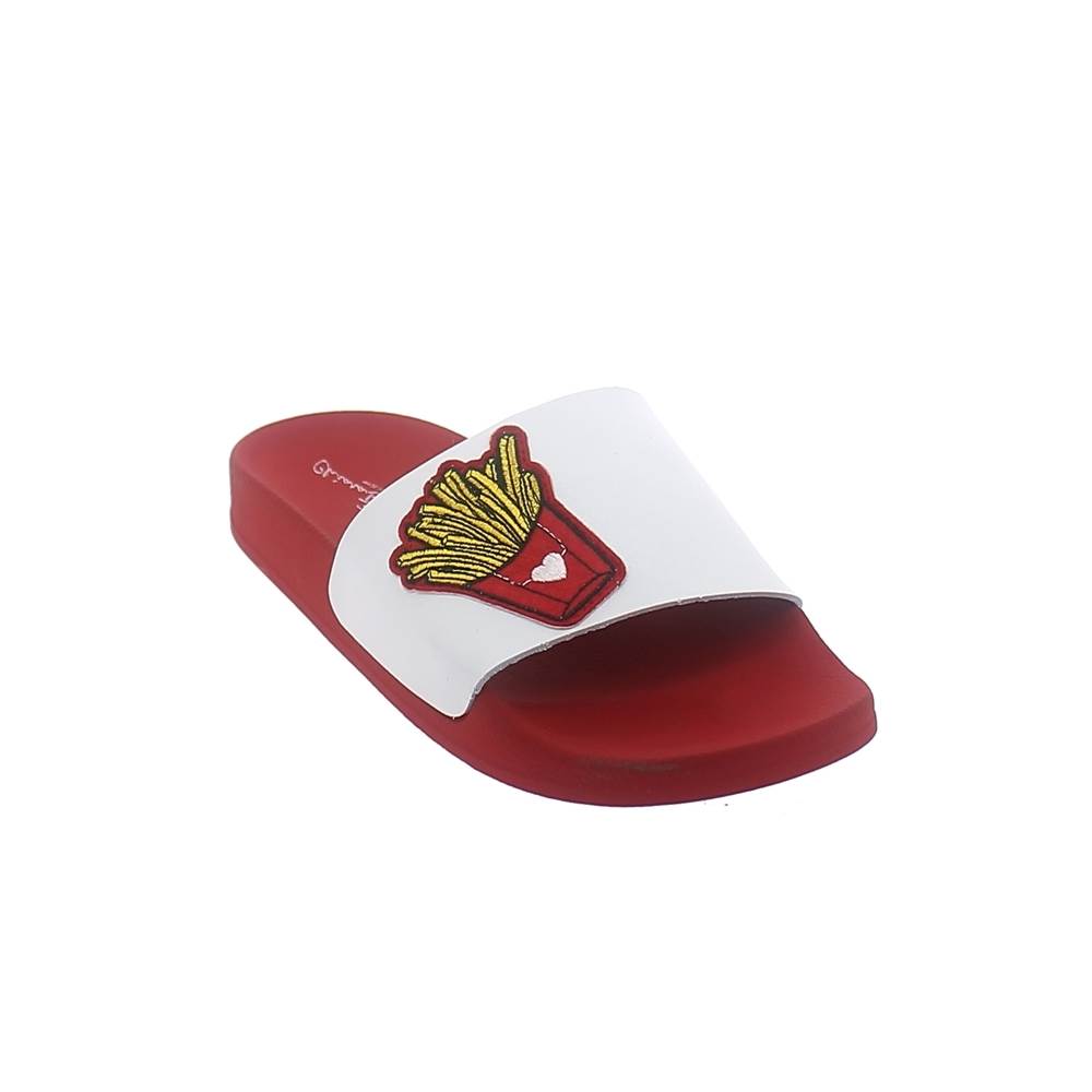 CIABATTA ESTIVA BIANCO-ROSSA CON FASCIA IN ECOPELLE E PATCH "CHIPS"