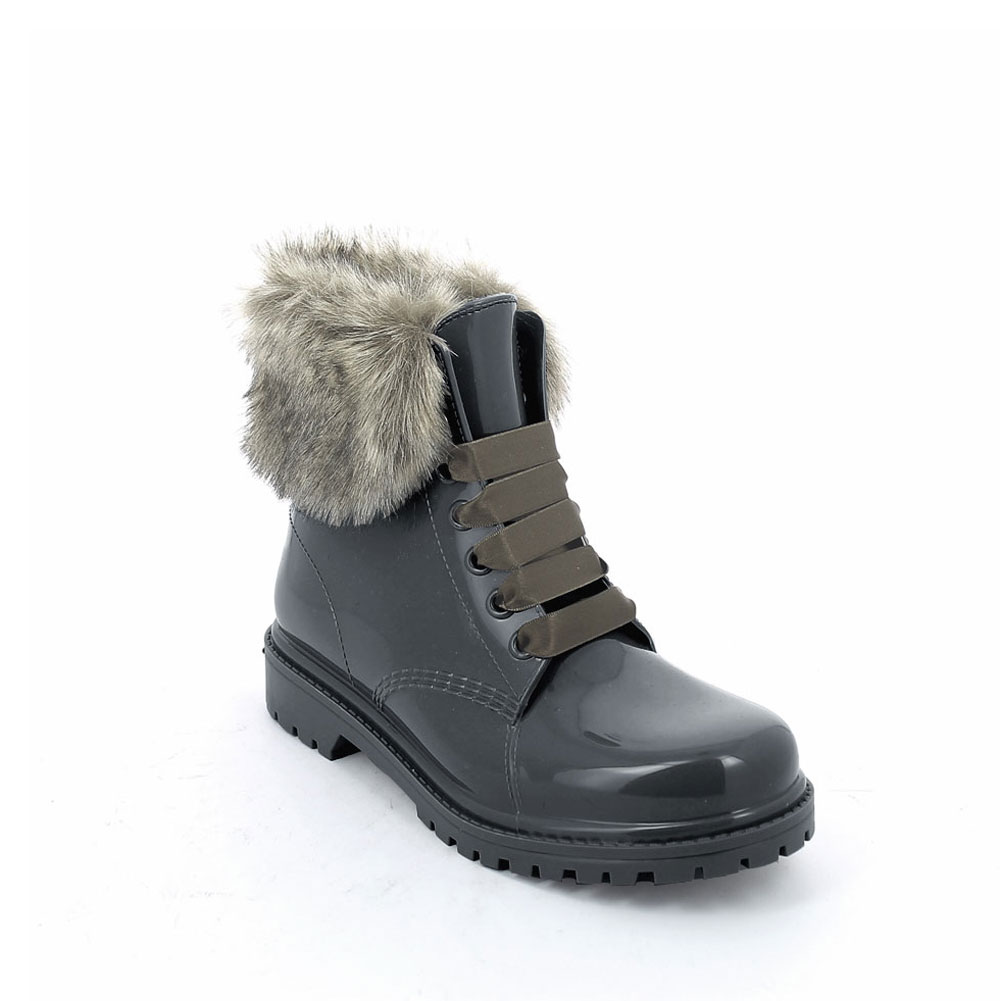 Anfibio Grigio fumo con collarino in pelliccia ecologica e fodera feltro